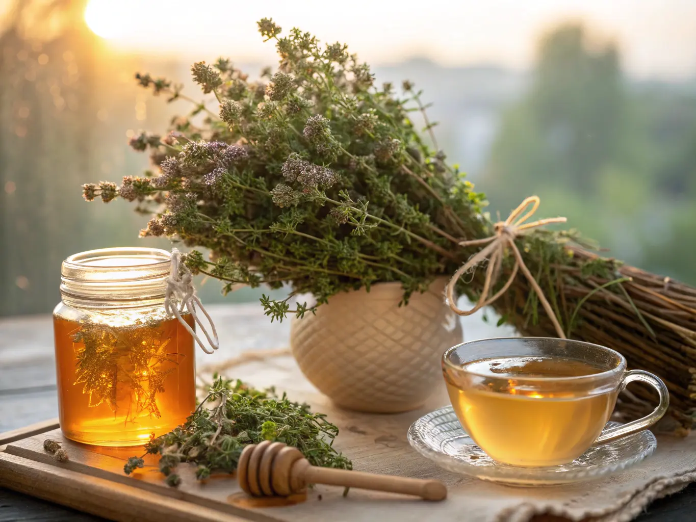 Le thym du jardin, avec son parfum puissant, est LE remède de grand-mère par excellence pour l’hiver. À lui seul, il regorge de thymol, un composé reconnu pour ses propriétés antiseptiques, antivirales et anti-inflammatoires.